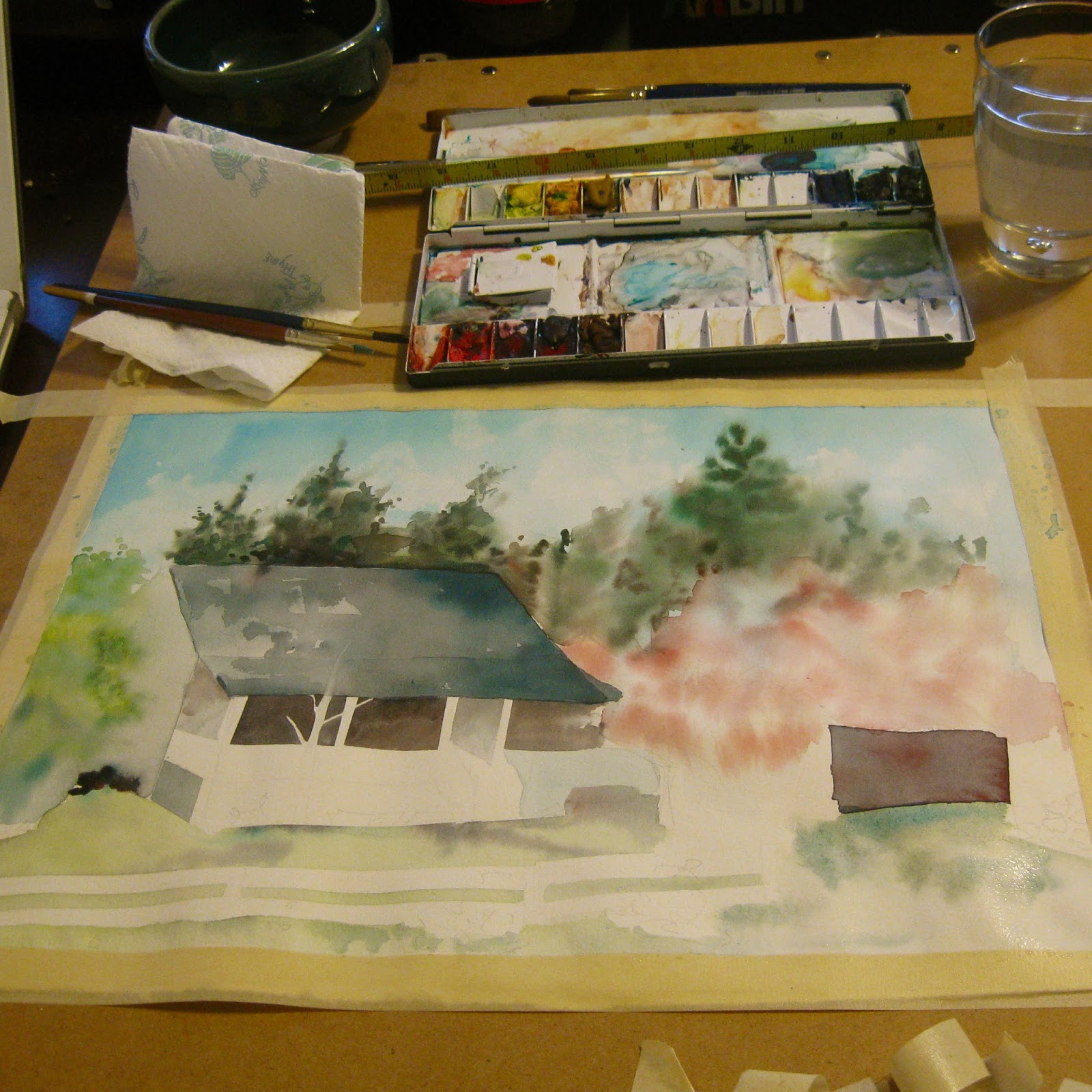 Between wash-drying breaks (so the pigments don't bleed)... take a selfie with a cat.